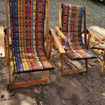 Hand made folding camp chairs and deck chairs. Adirondack and patio chairs. Decorative fruit bowls, chopping boards and lamp shades.