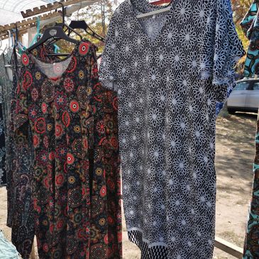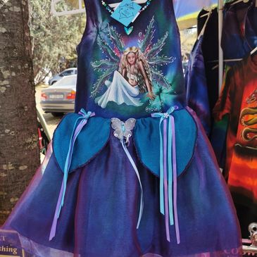My clothing is where hand painted gnomes and fairies come out to play on tie-dyed T-shirts, dresses and bell-bottoms.