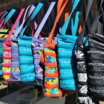 Fashionable all purpose handbags, jewellery, cushions, place mats and aprons.