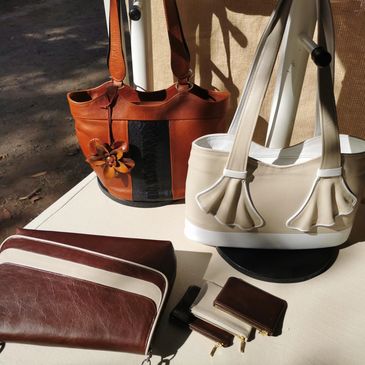 Handmade leather goods. My range includes handbags, ladies and mens wallets, key rings, wine bottle carry sase, barrette, hunting rifle sling, guitar straps clocks, jewellery boxes, coasters, spectacle cases, earrings and wrist cuffs.